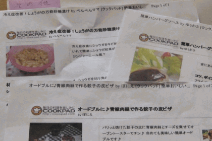 こちらが印刷したクックパッドのレシピ