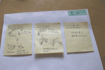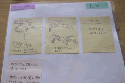 テレビで紹介されていた、えびの殻のむき方やなすぴの皮のむき方などのちょっとした裏技をフセンに書いてんおき貼ります。