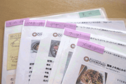 印刷したレシピは、それぞれのクリアファイルに入れます
