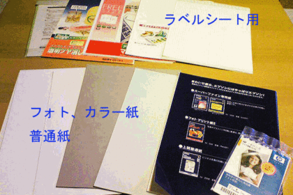 左から、普通紙、カラー紙(名刺用)、ラベルシート、フォト用・・・等々