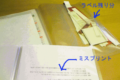 あまった、ところにはミスプリントしたものやラベルシートの残りを入れます。